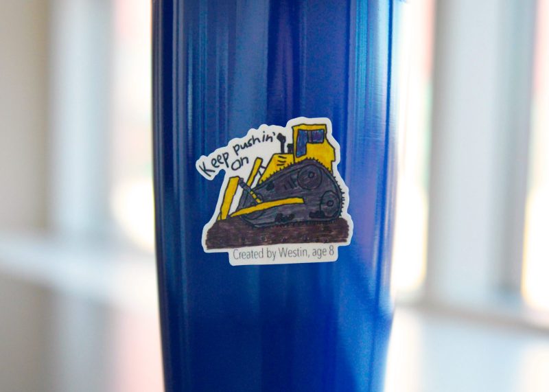Westin loves being outdoors and enjoys building and creating with his toys. For his sticker, he chose to draw a bulldozer, a symbol of strength and determination, just like him.